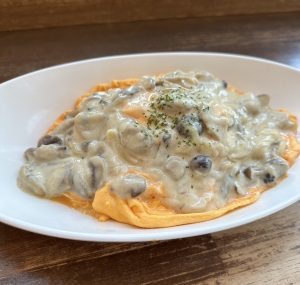 4種のきのこをふんだんに使った濃厚なクリームオムライス!