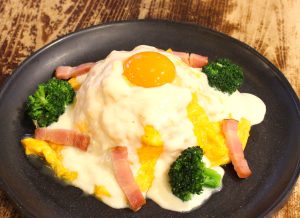 当店自慢のふわふわオムライスにコク深いチーズソースをかけ